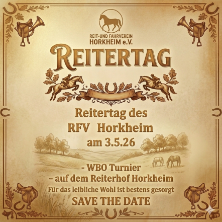 Nach langer Zeit gibt es endlich wieder einen Reitertag auf unserer wunderschönen Anlage auf dem Reiterhof Horkheim. Wir laden Sie herzlich auf einen Besuch ein. Der Reit- und Fahrverein freut sich auf einen tollen Tag voller spannender Wettbewerbe!